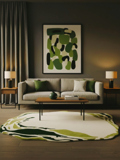 ₹24,900 – ₹103,999Price range: ₹24,900 through ₹103,999HALO ROUND HAND TUFTED RUG - FOREST GREEN