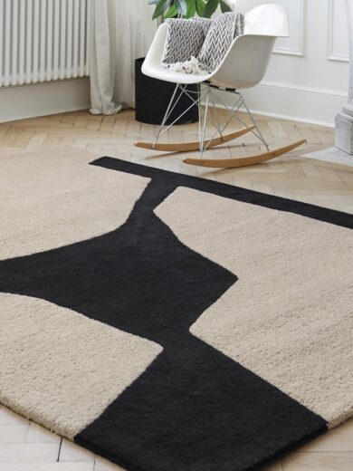 HOUNDSTOOTH PATTERN RUG - BLACK/BEIGE