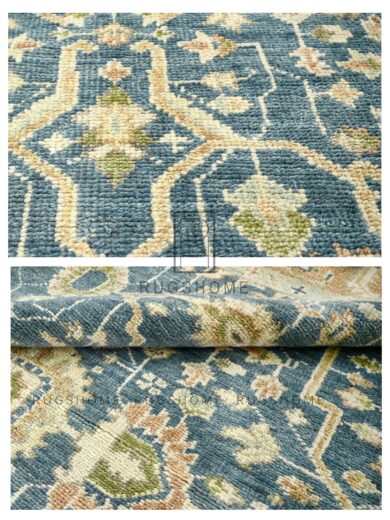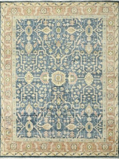 OUSHAK HAND KNOTTED RUG LIGHT BLUE/ORANGE