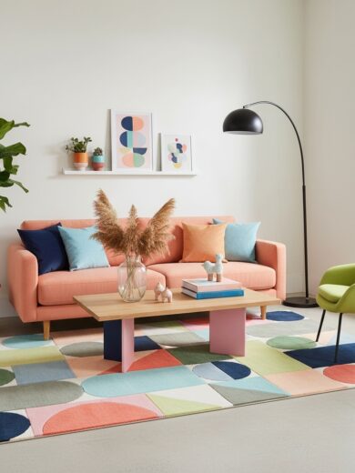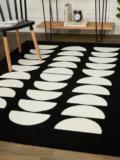 HOUNDSTOOTH PATTERN RUG - BLACK/BEIGE