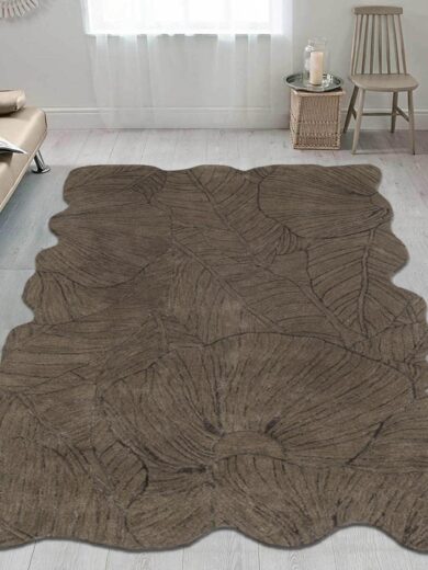 LEAF WOOL & VISCOSE RUG - COFFEE BROWN
