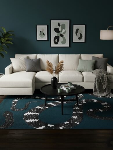 LUXURY SNAKE DESIGN RUG - TEAL/BLACK