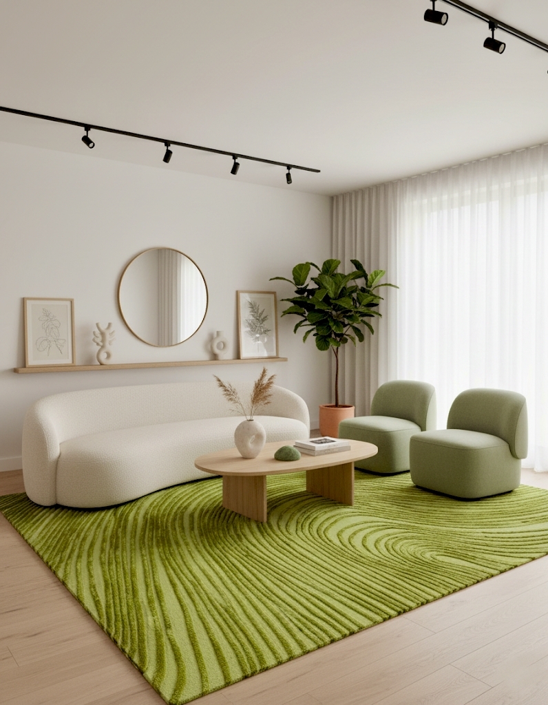 Rug Story    Luxury Flow Wool & Viscose Rug – Bring organic movement into your home with the Forest Green Flow Wool Rug, featuring hand-carved ripple-like patterns that mimic natural sand waves. Crafted from premium New Zealand wool & Viscose this designer rug adds warmth, depth, and texture to any modern space. The Frost Green tones make it a versatile choice for living rooms, bedrooms, or creative interiors. Hand-tufted by skilled artisans, it offers both softness underfoot and a statement of timeless craftsmanship.