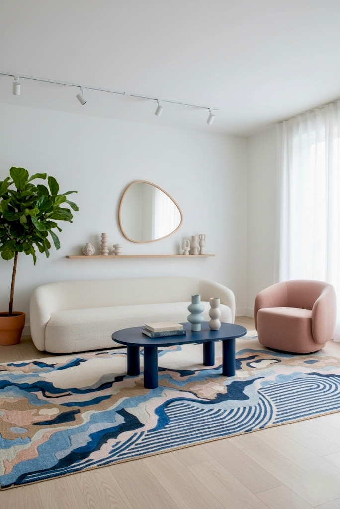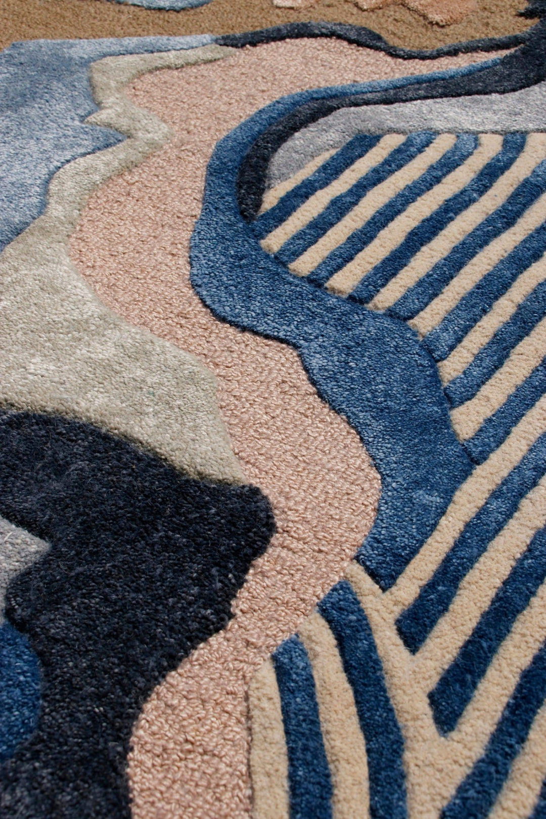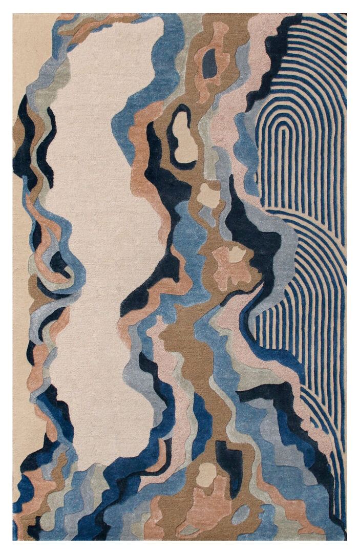 Rug Story  Introducing a bold and artistic statement piece for contemporary and maximalist interiors: the Abstract Valencia Area Rug. This hand-tufted rug beautifully translates the intricate contours of a topographic map or the fluid movement of a river delta into a dynamic, modern floor covering.