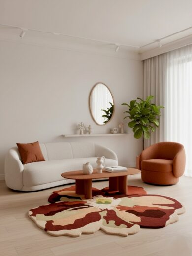 Red rugs transform living spaces with a burst of color and elegance. Acting as a focal point, they ground the furniture layout and bring vibrancy to neutral or monotone settings. Whether you’re choosing a hand-knotted wool rug for a luxurious feel or a flatweave design for a minimalist look, red enhances the visual interest of your living room effortlessly.