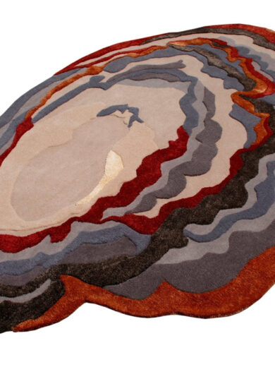 OCEAN WAVE ABSTRACT WOOL RUG - RED/MULTI